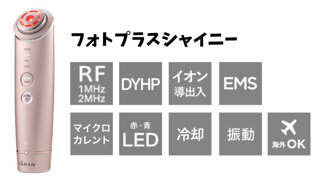 | DYHP | RF DYHP LED(赤) | どちらでも | 美容液または シートマスク | 約5分 | 3段階 | 週に2~3回 | |